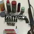 Durante o cumprimento da ordem judicial, os policiais localizaram duas armas de fogo irregulares, além de diversas munições e apetrechos utilizados para recarga.